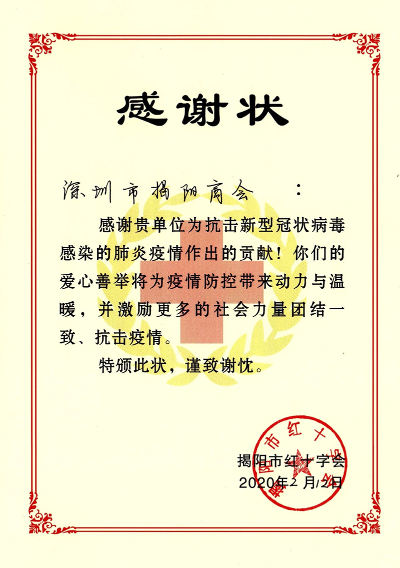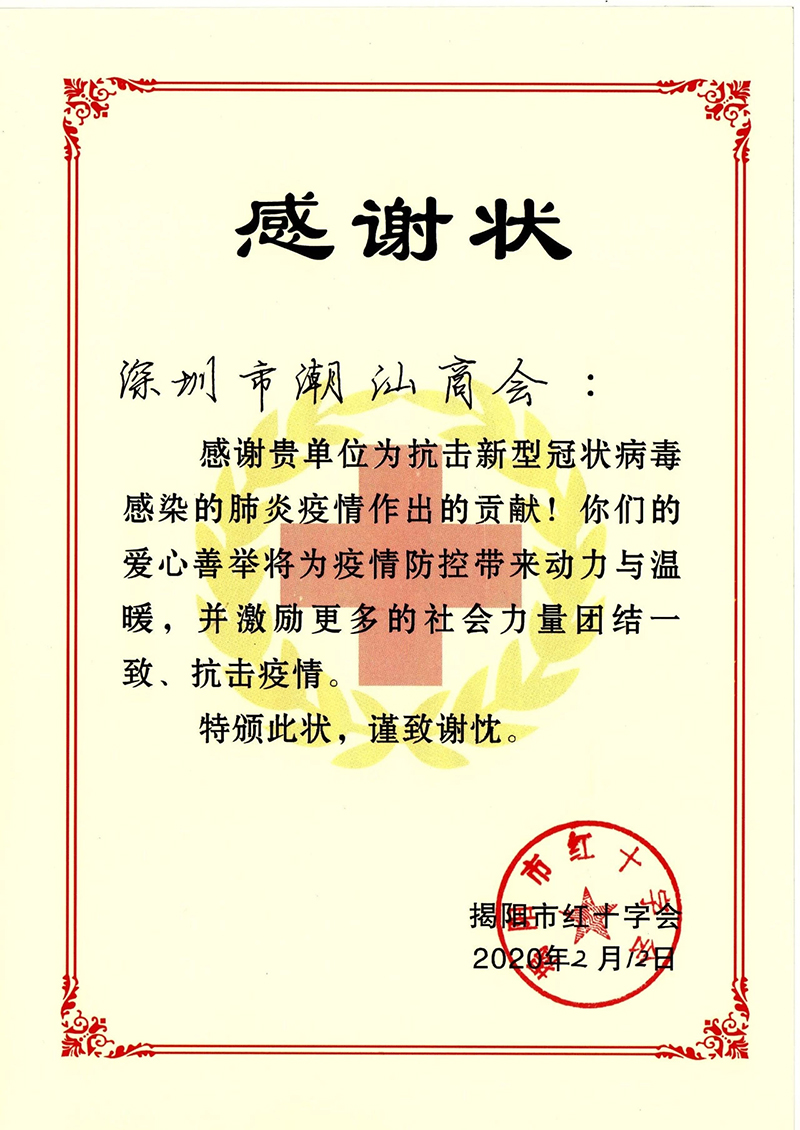 深圳市揭阳商会也积极行动,捐资捐物,支援揭阳疫情防控。