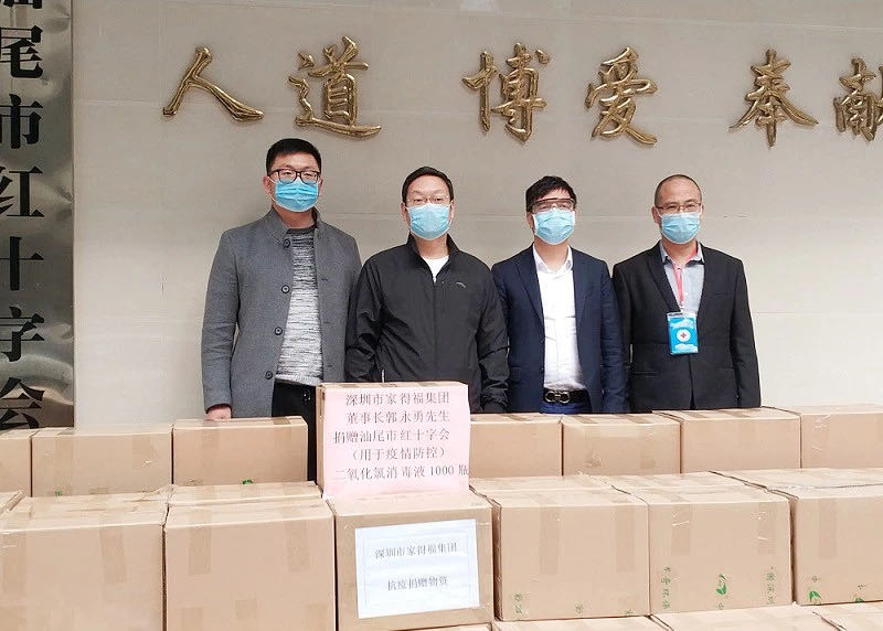 2月16日,我会常务副会长、深圳市家得福集团董事长郭永勇向汕尾市红十字会捐赠二氧化氯消毒液1000瓶,价值10余万元。此次捐赠将用于汕尾市相关医院及防控单位的疫情防控工作。