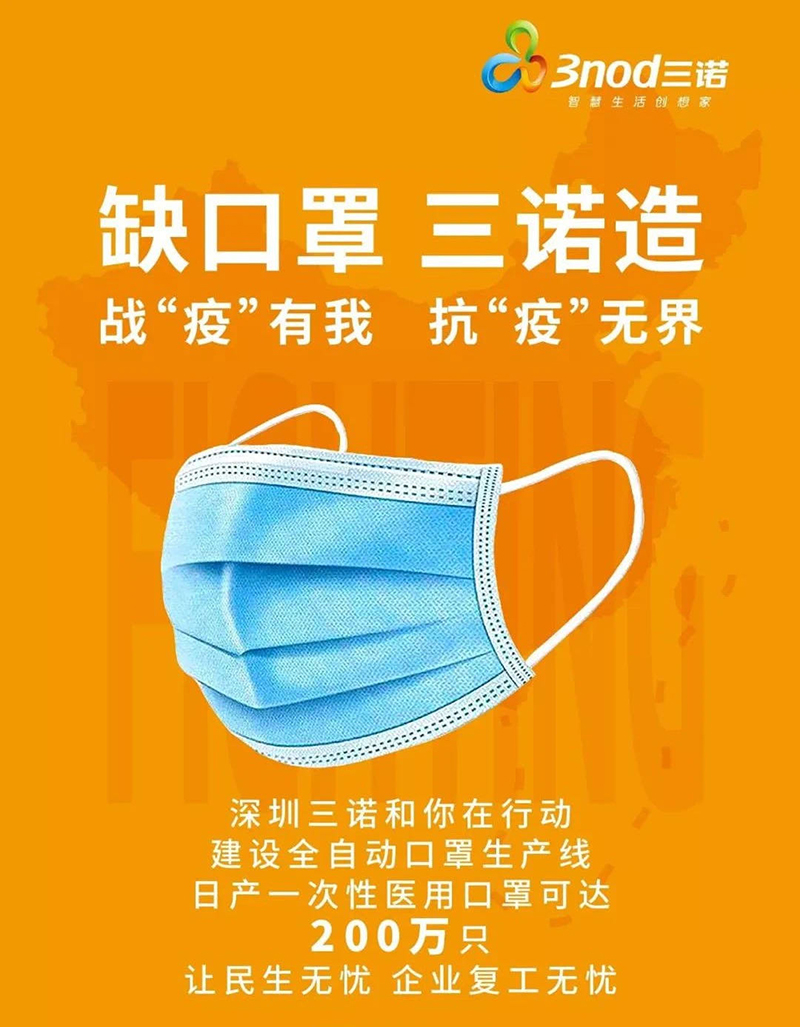 近日,我会名誉会长刘志雄单位三诺集团规划了独立的洁净生产车间,投入21条目前市面上最先进的三代全自动口罩生产线,可日产符合国家标准的一次性医用口罩200万只、医用N95口罩20万只,合计日产220万只,2月22日调试投产,2月底前陆续开始供货。
