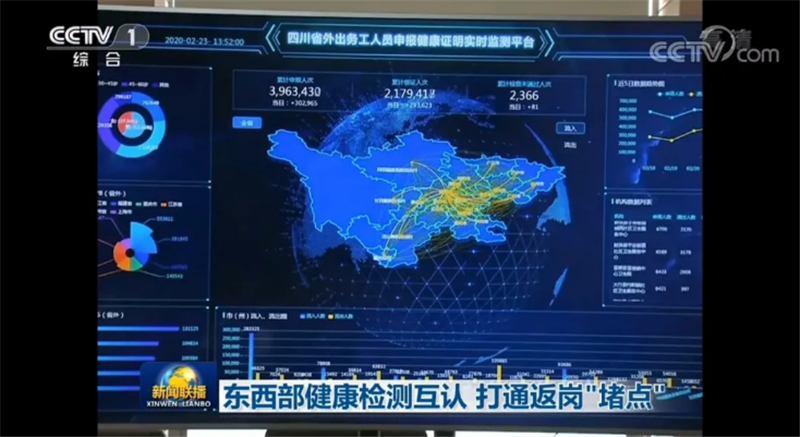 面对庞大的外出务工人员需求,四川省大数据中心紧急攻关,研发出“健康证明系统”大数据平台,务工人员通过微信、支付宝就能扫码网上申报,在社区医生严格核验后,通过大数据信息核查、智能比对后,符合要求的务工人员就能得到一个专属的电子健康证。