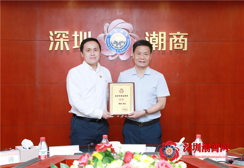 黄育宏驻会会长(右)为常务理事罗涛(左)颁发牌匾