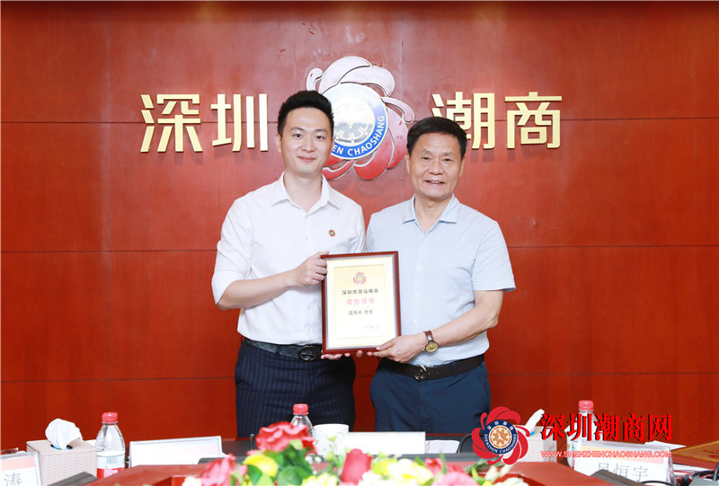 黄育宏驻会会长(右)为常务理事温海涛(左)颁发牌匾