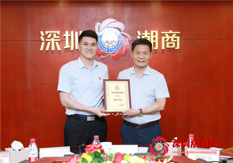黄育宏驻会会长(右)为理事邓锦溏(左)颁发牌匾
