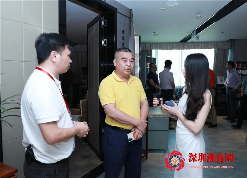 在雅乐荟的雅尊厅,黄育生常务理事接受商会直播专访。在专访中,黄育生常务理事介绍到,雅乐荟是深圳市重点文化企业,国家高新技术企业,也是深圳老字号企业,更是潮籍企业较早从事文化产业投资的一家集团公司,目前拥有影音、智能、文化、投资、产业链等多版块发展。是国内唯一的具有综合性服务的机构,集团的发展受到了中央、省市领导的高度肯定。
