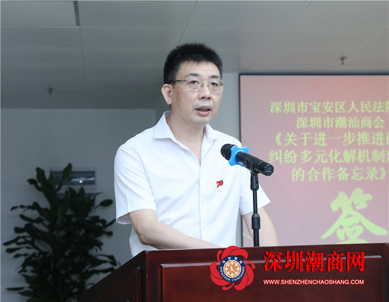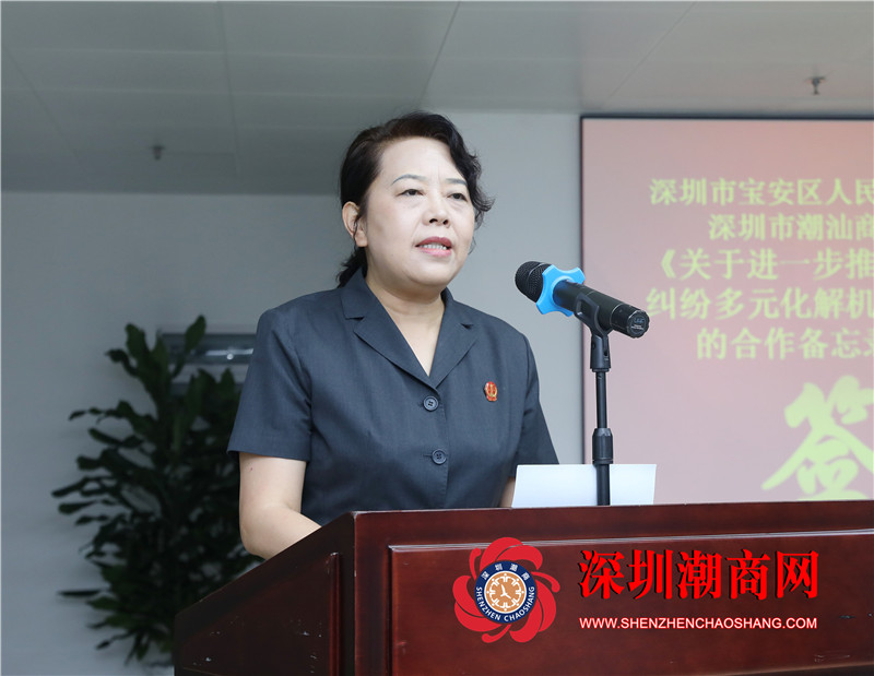 季媛副院长表示,潮汕商会汇聚商业人才,致力潮汕企业发展,在化解涉潮汕商事纠纷方面独具优势。宝安是产业大区、核心湾区,辖区内潮汕企业众多,是宝安法院多元解纷合作的现实需求和内在驱动。此次合作,将进一步实现各方优势互补、良性互动,有力推进商事案件和在线纠纷的多元化解机制建设,护航深圳特区经济发展。