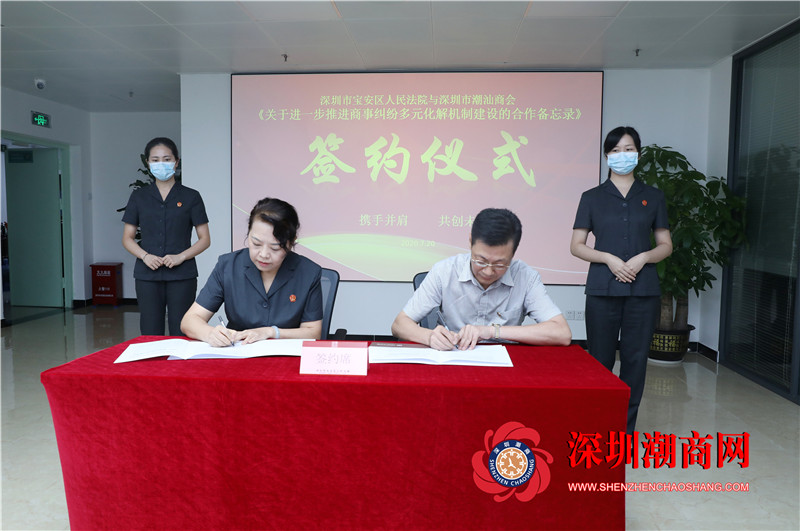 2020年7月20日下午,下载安装 与深圳市宝安区人民法院(简称“宝安法院”)共同签署《关于合作开展矛盾纠纷多元化解工作的备忘录》,设立下载安装 驻宝安区人民法院调解工作室,结合民间力量缓和社会矛盾纠纷,共同参与矛盾纠纷多元化解工作。