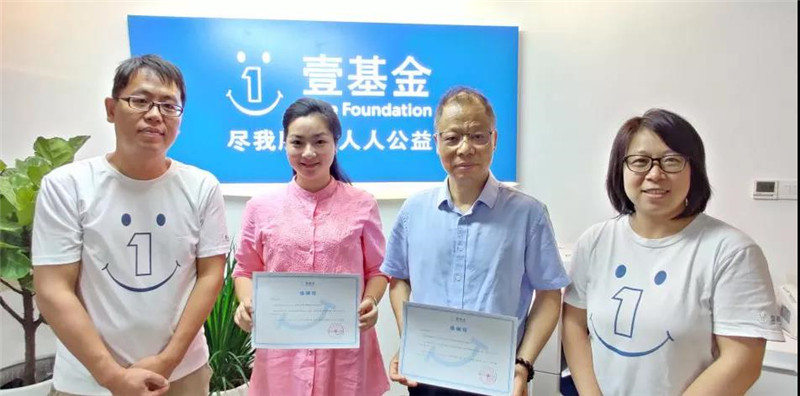 双方代表合影留念,左一壹基金聂良非,左二李红梅、右二何奕鹏,右一壹基金刘园月