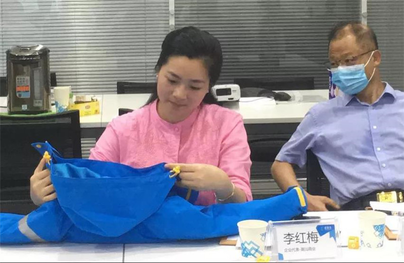 作为商会代表,何奕鹏先生和李红梅女士深入了解温暖包如何助力扶贫攻坚战。同时,在生产工艺、款式设计、内容配备方面,二位代表提出了建设性意见,并亲自为困境儿童挑选新款壹基金温暖包。