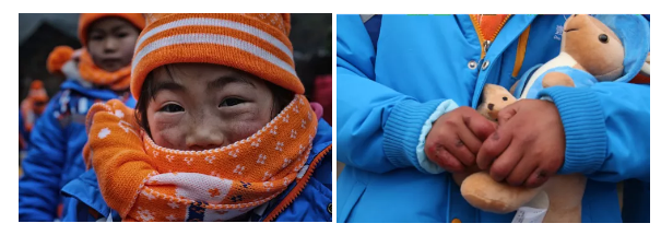 我国幅员辽阔,中西部比较寒冷的贫困地区,儿童在冬季生冻疮,皮肤皲裂的情况仍然比较普遍。贫困地区同时也是劳动力输出的主要区域,留守儿童非常普遍,他们缺少亲情和关怀,缺乏安全感,需要陪伴和支持。