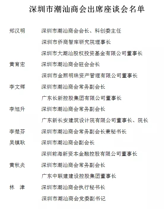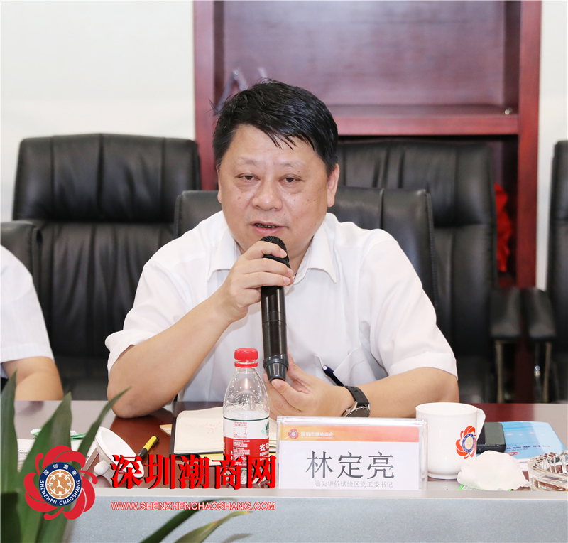 林定亮书记高度肯定了商会十四年的发展和取得的成绩,商会墙上的金字牌匾是一步一个脚印努力发展的成果,撑起了潮商在深圳的家。林定亮书记指出,华侨试验区紧紧围绕中央、省委、市委的工作部署,坚定不移地把加快发展作为首要任务,以基础设施建设为先导,以规划设计为引领,以招商引资为重点,以政策争取为关键,以新金融新经济为突破,抢抓机遇。近期省政府给予了强大的政策支持,平安、保利都纷纷进驻华侨试验区,整个发展势头非常好,诚邀商会企业家到华侨试验区考察洽谈,共享机遇。