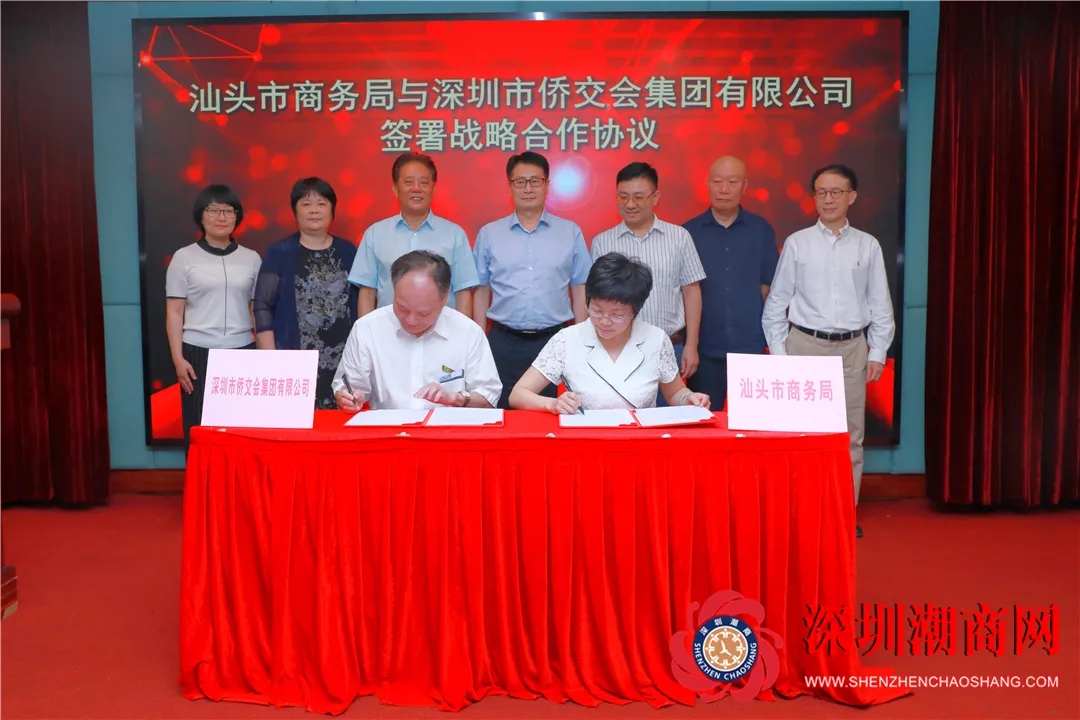 2020年7月1日,深圳市侨交会集团有限公司与汕头市商务局在金海湾大酒店举行“共建‘汕头云展厅’战略合作协议”签约仪式。市委常委、副市长李宇,我会会长、侨商智库理事长郑汉明等出席仪式并鉴签。