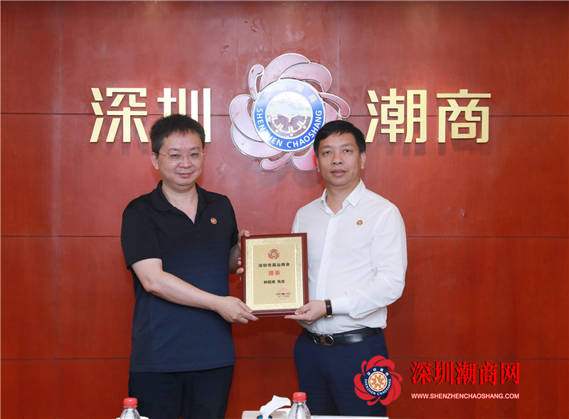郭永勇轮值会长(右)为理事林阳涛(左)颁发牌匾