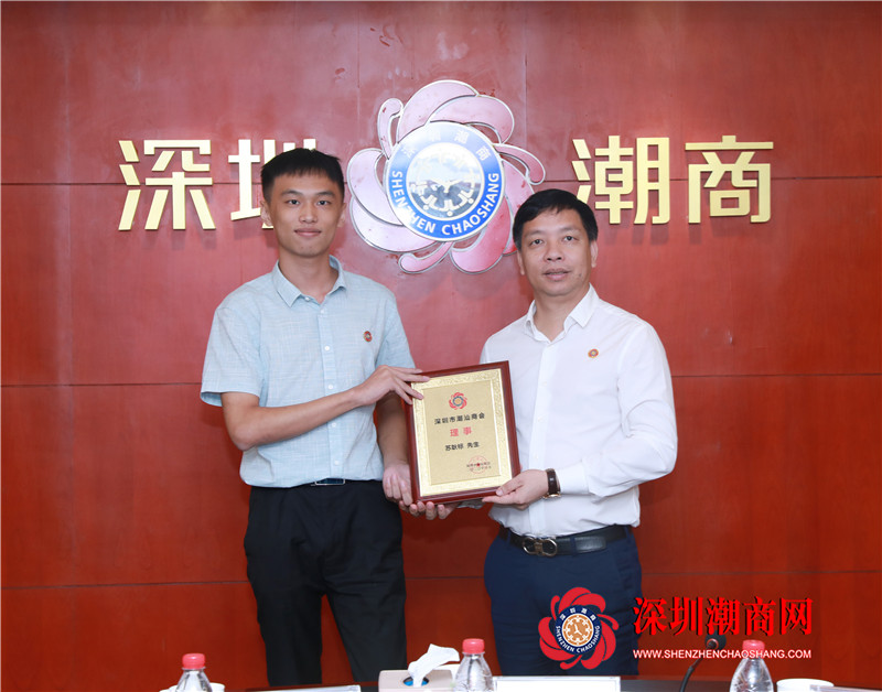 郭永勇轮值会长(右)为理事苏耿标(左)颁发牌匾