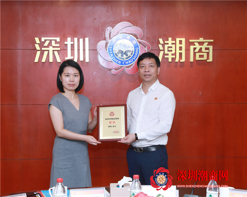 郭永勇轮值会长(右)为理事罗丹(左)颁发牌匾