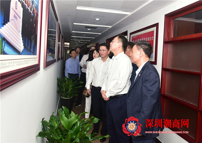 何晓军市长一行首先参观了商会发展历程。随后,双方在“潮商基金”会议室进行交流座谈,黄育宏驻会会长主持会议。