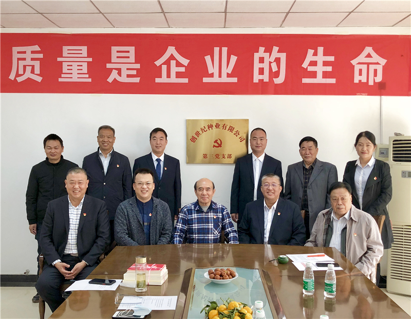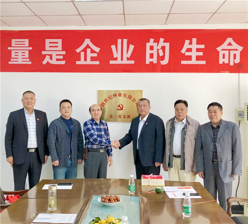 2020年10月25日上午,中共创世纪种业有限公司第三支部成立揭牌仪式在河南温县举行。我会党委书记邓东率队出席揭牌仪式,党委副书记、纪委书记姚欣强,党委副书记黄耀光,党委委员、党委办公室主任廖淑媚随同出席。