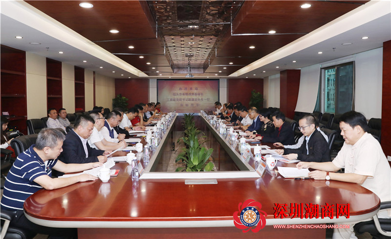 会前,陈馥忠书记一行在郑汉明会长等陪同下参观了商会。随后,双方在潮商基金会议室就如何促进招商引资、企业项目合作对接等有关事宜进行了深入交流。黄育宏驻会会长主持会议。期间,大家观看了商会、汕头云展厅宣传片。