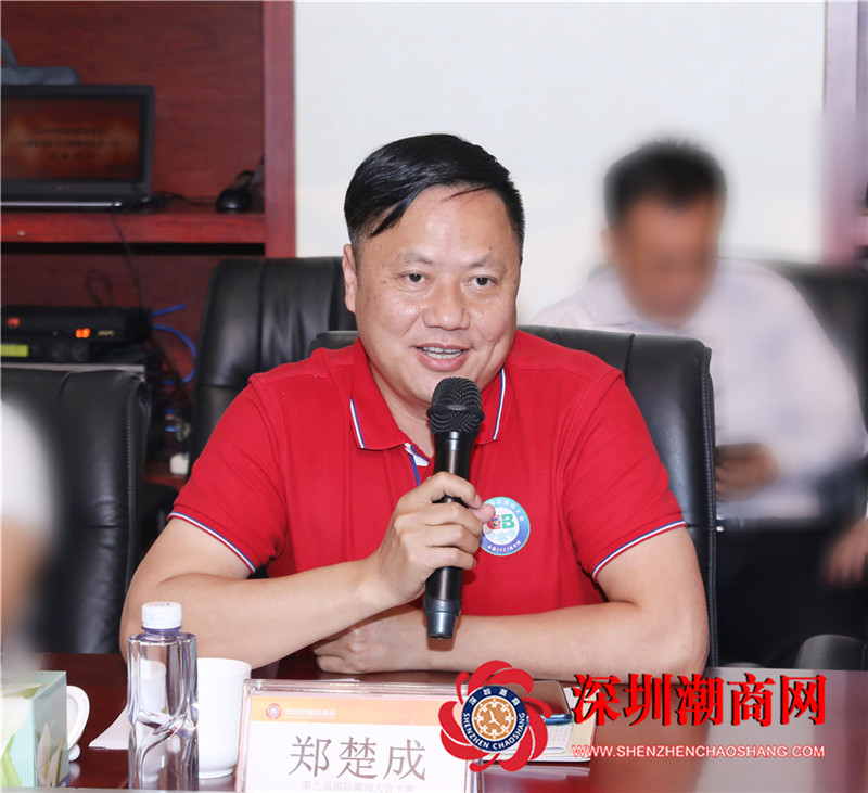 郑楚成主席介绍了第九届国际潮商大会的筹备工作和相关事宜。因疫情原因,大会将延期到2021年。他表示,今年10月份,举行了第九届国际潮商大会延期发布会暨全球潮商助力龙江全面振兴哈尔滨新区招商推介会,潮商欢聚哈尔滨,共商发展。未来要以第九届国际潮商大会为契机,将优秀的潮汕文化传递到东北,建设“潮汕文化馆”、“潮汕美食街”,使哈尔滨人民也能体会到潮汕文化的源远流长,享受潮汕文化带来的乐趣与非物质文化传承的精神价值。