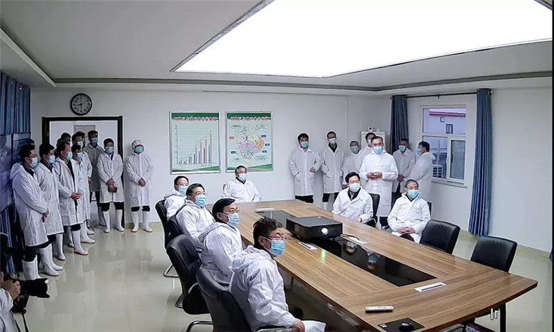 进入种猪场,胡春华副总理按企业要求进行了消毒处理、换上了防护服,他通过监控视频查看了猪舍内景,了解猪场的生产经营情况。白善霖资深副董事长对项目建设做了简要汇报,他表示,正大集团庆阳生猪全产业链综合示范项目采用未来型跨越式发展的模式,将绿色种植、饲料、养殖到屠宰加工、冷链物流、商业零售全产业链有机结合,建立了生态优先、绿色发展的循环农业体系,采取“果畜结合”、“粮畜结合”、“菜畜结合”的方式,实现了粪污资源化利用,促进了种植业的提质增效。