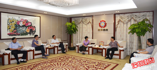 2015年5月25日下午,重庆市驻广东办事处主任陈小南率驻深工作团莅临下载安装 参观访问。我会创会会长、战略决策委员会主席吴开松,驻会常务副会长黄育宏,副会长兼秘书长丁伟斌热情接待了陈小南一行。双方在商会贵宾室进行座谈。