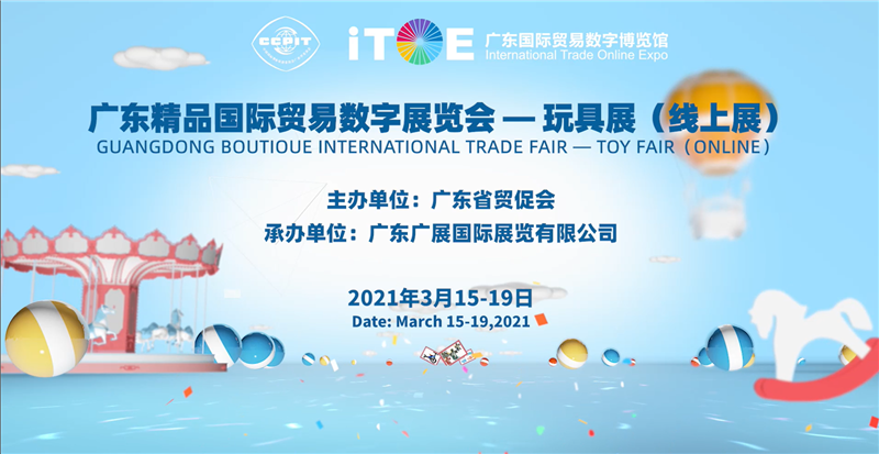 2021年3月15日,由广东省贸促会主办的广东精品国际贸易数字展览会-玩具展(线上展)开幕,展会在ITOE广东国际贸易数字博览馆(网址:www.itoegd.com)连续举办5天,持续至3月19日。