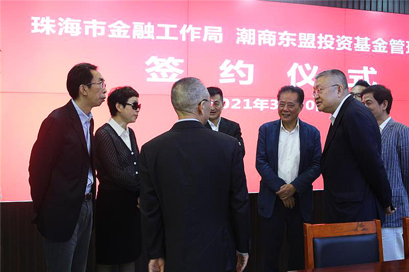 2021年3月30日下午,珠海市金融工作局与潮商东盟投资基金公司签署框架协议,全面加强双方在跨境投融资等领域的合作。珠海市政府副市长胡新天,全国工商联原党组副书记、原副主席黄小祥,珠海市政府副秘书长何庆明,珠海市金融工作局局长穆竑,北京潮商会会长陈才雄,珠海潮人海外联谊会永远会长郑通亮,澳门金控集团股份有限公司首席执行官张勍,潮商东盟投资基金董事长陈萍等出席框架协议签署仪式。