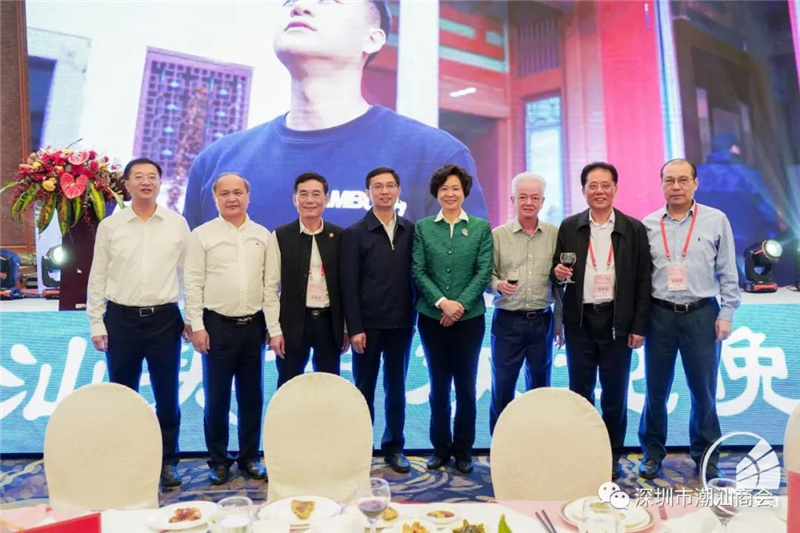 ▲广东省侨办主任庞国梅(右四)、汕头市市长曾风保(左四)、我会会长郑汉明(右二)、名誉会长林少华(左三)等侨商合影