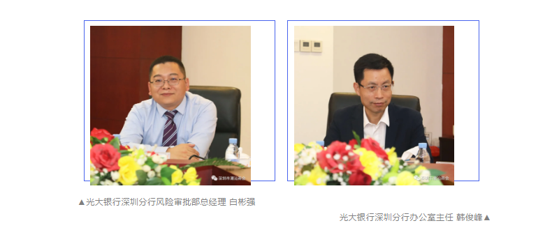 2021年5月10日下午,光大银行深圳分行行长、党委书记韩学智一行莅临下载安装 参观交流,受到我会会长郑汉明、驻会会长黄育宏、名誉会长郑桂泉等热情接待。