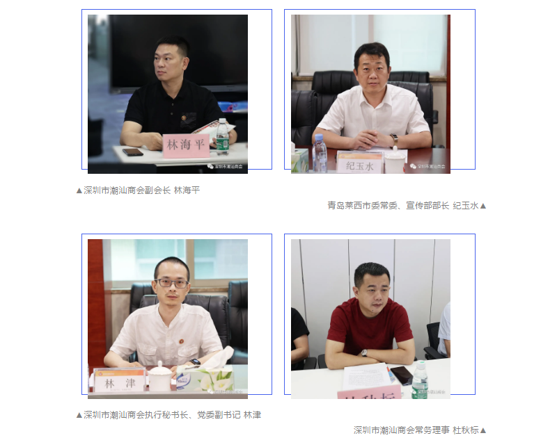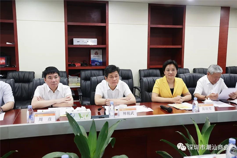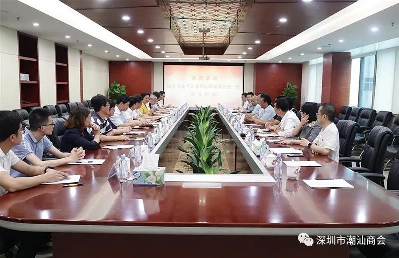 会后,在郑汉明会长陪同下,汕头市金平区林锐武书记、陈玩雪区长、周彦副区长等领导来到商会参观,并进行座谈交流。
