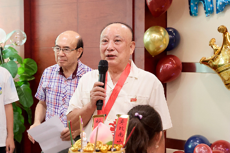 我会党委书记邓东主持生日会,并向吴开松创会会长献上最诚挚的祝福。“吴开松会长一直信奉低调做人,是参与深圳特区建设第一批开拓者,用一生的经历做出我们真正崇拜的榜样。” 邓东书记说到,“今天是吴会长的生日,让我们一起祝福他一生平安健康开心、福如东海、寿比南山,同时也祝福今天参加生日会的所有人平安健康,家庭幸福,万事如意!”