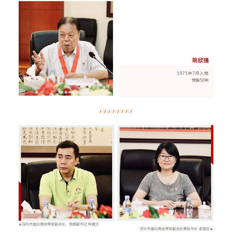 郑汉明会长代表商会向各位老党员致以节日问候,并向5名纪念章的获得者表示诚挚祝贺和崇高的敬意。他表示,商会健康有序、创新发展离不开党委的政治引领,商会从创会伊始就启动党建工作,从最初的8人党员支部发展至目前有400余名党员的一级党委,并于建党100周年此重要历史节点,荣评全国工商联党建示范单位,这离不开大家的努力及无私奉献。5名老党员都是峥嵘岁月的亲历者、艰苦奋斗的参与者、繁荣昌盛的建设者,个个从“青丝少年”到“银丝长者”,见证了我们伟大祖国从站起来、富起来到强起来的伟大飞跃。我们要感恩党,感恩这个时代,要加强党建与会建有机融合,以优异的成绩迎接党的100周岁生日。