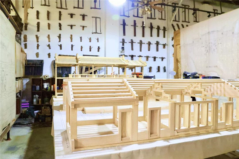 木雕工作坊集木雕工序、展示、培训、体验为一体,从木雕的制作工序起稿、磨刀、粗坯、细雕、打磨、上漆、贴金;将以1:100比例打造“微型祠堂”还原“四马拖车”、“四点金”、“下山虎”等古建筑民居模型;以“师带徒”形式培养木雕接班人等。