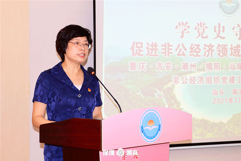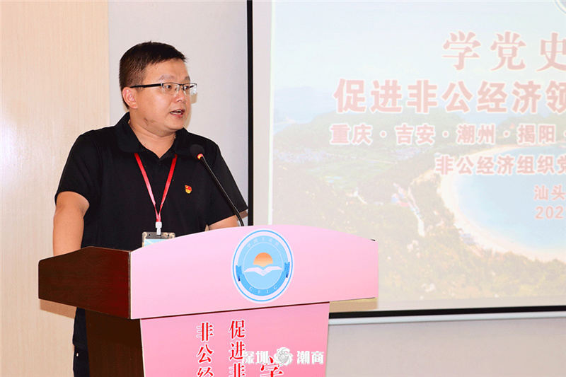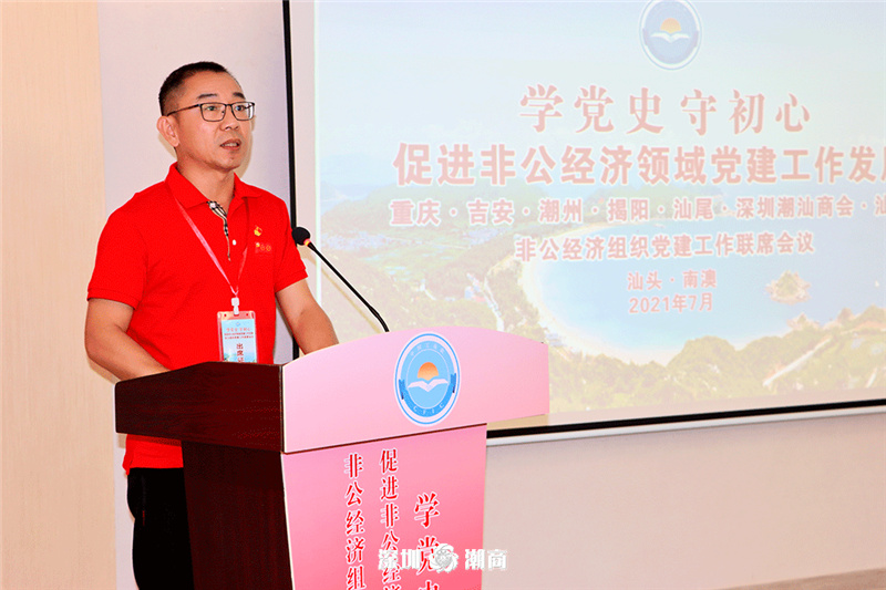 为深入学习贯彻习近平总书记在庆祝中国共产党成立100周年大会上的重要讲话精神,持续推动党史学习教育走深走实,促进各地非公经济组织党建工作发展,2021年7月29—31日, “学党史、守初心,促进非公经济领域党建工作发展”非公经济组织党建工作联席会议在汕头举行。重庆、吉安、汕头、潮州、揭阳、汕尾和深圳潮汕商会等七市非公经济党组织代表汇聚一堂,开展党史学习教育,畅谈工作感悟,共同探讨了新时代加强非公党建工作的新措施和新途径。