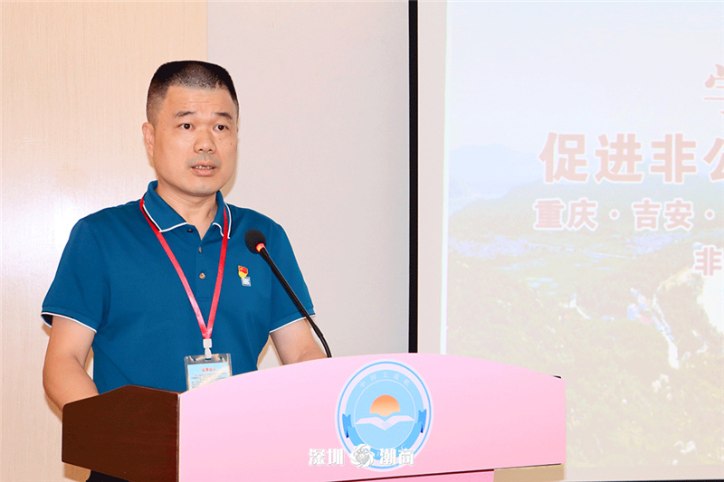 深圳市潮汕青年商会党委书记黄坚泰以《创业创新立潮头,潮青永远跟党走——深圳市潮汕青年商会青春党建创新实践与探索》为主题进行分享。