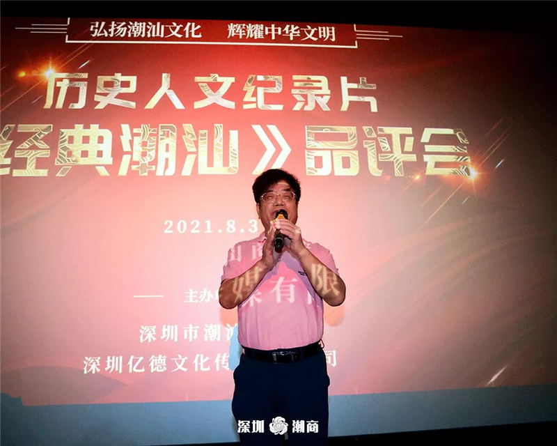 郑汉明会长在致辞中表示,由深圳潮籍企业“亿德文化”策划并投资出品的《经典潮汕》,是一部全面介绍潮汕历史人文纪实片,这一纪录片的顺利拍摄,是潮汕文化建设领域的一大盛事,对于研究和弘扬潮汕文化也具有重要的现实意义和作用。我们要依托潮汕文化这一珍贵资源,讲好潮汕故事,丰富文化内涵,增强文化自信,提升竞争软实力。