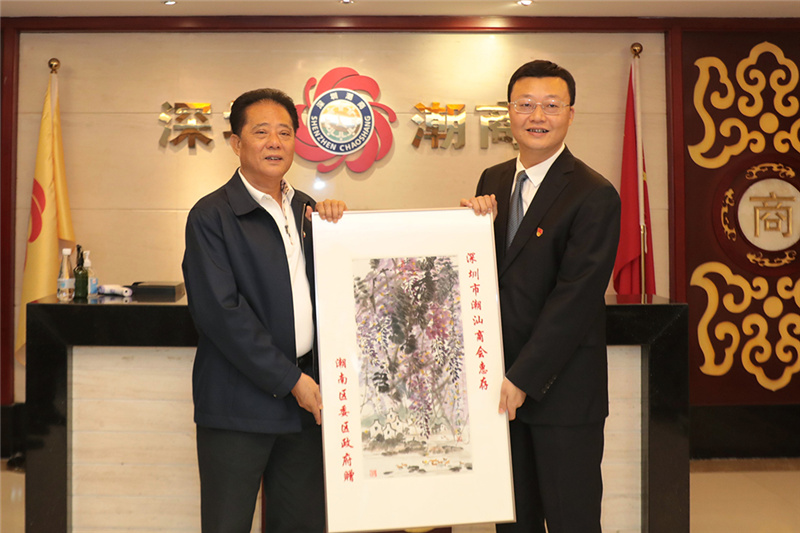 郑汉明会长对潮南区委许广圻书记、李飞区长率队莅临商会交流指导表示诚挚的感谢!他介绍到,商会是由粤东四市在深企业家共同成立的社团组织,成立十五年来,会员企业覆盖各行各业。目前,商会打造了以国际潮商经济合作组织为抓手的国际合作平台,以潮商东盟投资基金为代表的金融服务平台,以华人华侨产业交易会(简称:侨交会)为载体的产业投资平台。其中,侨交会推动了“ITOE汕头云展厅--潮南馆”项目落地,以文字、图片、视频多元化方式助力潮南区政府进行招商引资,帮助潮南企业精准对接海外采购商,不断扩宽海外市场。