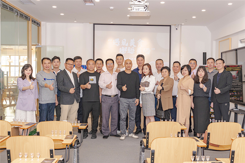 2021年10月26日下午,“遇见美食.邂逅美酒”分享会在深圳南山大海智慧文化艺术公司举行。本次活动由我会常务理事单位深圳市华腾酒业有限公司、深圳市拉尔夫食品有限公司联合举办。我会常务理事黄少军、杜丽勤、蔡淳林、陈坚和、陈建华、陈晓鹏、陈永智、范泽华、方海城、黄锐佳、黄泽吉、林大弟、林开龙、魏伟光、姚少育、郑柳源、庄焕德等出席活动。