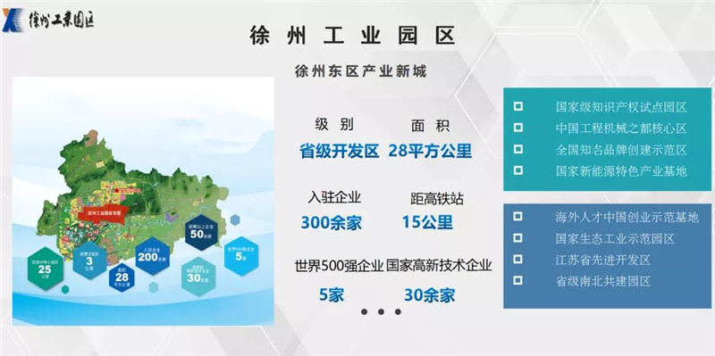 地处苏鲁豫皖四省交界的徐州,拥有多张城市名片——“中国历史文化名城”、“淮海经济区中心城市”、“全国重要的综合交通枢纽”、“一带一路重要节点城市”。结合城市特色,徐州重点发展工程机械和智能装备、集成电路与ICT、新能源、生物医药与大健康、新材料、节能环保等六大战略新兴产业。徐州工业园区作为徐州东区的产业新城,围绕新发展理念和高质量发展主线,将坚持不移走产业转型发展道路,重点发展高端装备与智能制造、新能源汽车、电子与ICT三大主导产业。