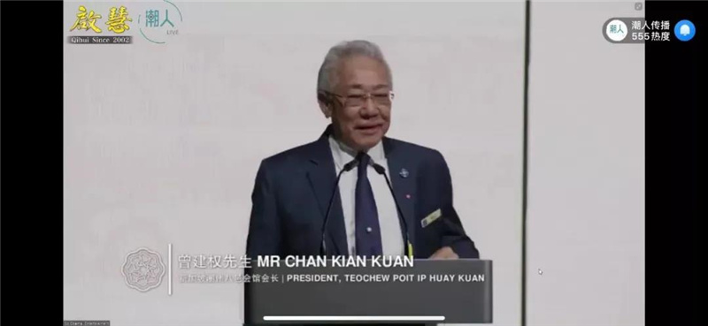 新加坡副总理王瑞杰先生和新加坡潮州八邑会馆馆长曾建权先生分别致辞。莱佛士音乐学院的舞蹈表演《鼓舞绸韵》、新艺演艺团歌舞表演《我爱潮汕小吃》等潮味十足的精彩节目为开幕典礼增添了文化气息和青春活力,为线上线下嘉宾提供了一席潮汕文化盛宴。