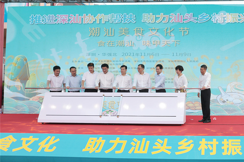 2021年11月6日下午,主题为“推进深汕协作帮扶 助力汕头乡村振兴”的潮汕美食文化节在深圳市福田区华强北步行街正式启动。深圳市委常委、常务副市长黄敏,汕头市副市长蔡永明出席活动仪式。我会会长郑汉明受邀出席开幕式。
