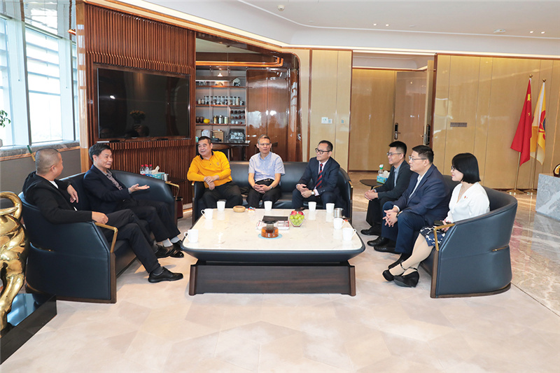 蔡忠南名誉会长对黄育宏驻会会长率队来访表示热烈的欢迎。他介绍到,中南控股集团希望成为一个受人尊敬的企业,传达快乐工作的价值观,为社会做贡献、成就团队,让身边的人过得更好。他表示,商会的轮值机制非常好,不仅能加强商会与会员之间的联系,更能激发会员作为商会“主人翁”精神,持续推动商会平稳健康发展;此外,商会对外联系成果丰硕,与青岛建立紧密联系,非常荣幸接待青岛驻商会的陆修茂部长、刘东处长。他希望,商会的走访活动可以持续举办,加深商会与会员、会员与会员之间的联系交流,推动商会成为在深潮商的“温暖之家”。