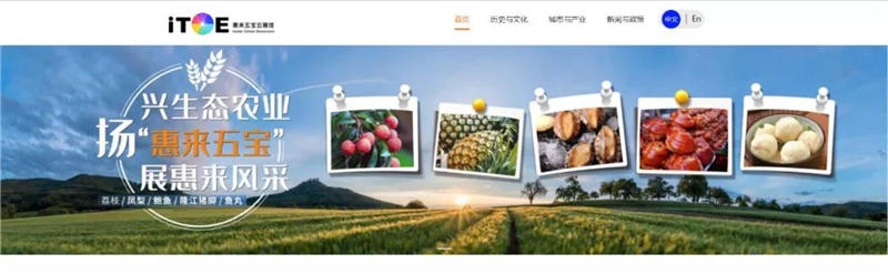 11月25日,ITOE广东国际贸易数字博览馆“惠来五宝云展馆”正式上线运营,旨在整合惠来农业产业信息,汇集惠来实力企业,打造惠来农副产品集中展示和面向海内外推广的数字化平台。云展馆可中英文双语切换,设惠来历史与文化、城市与产业、新闻与政策三大板块,重点展示推介惠来荔枝、凤梨、鲍鱼、隆江猪脚和鱼丸五种惠来特色农产品,并在Facebook开设专题页面,与全球粉丝交流互动。