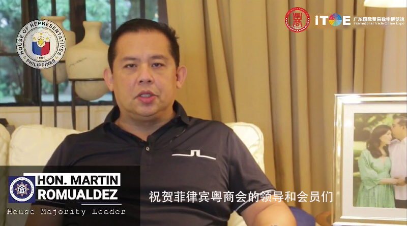 受菲律宾杜特尔特总统的委托,菲律宾贸易和工业部部长拉蒙.洛佩斯先生,中国广东省贸促会党组成员、秘书长敖妍女士,中国驻菲律宾大使馆经济商务处负责人朱珉先生,菲律宾国会众议院多数党领袖马丁.罗麻地斯先生,菲律宾贸易和工业部副部长马卡杜曼先生,菲律宾税务局局长凯撒.杜莱先生,菲律宾特区管理局局长理查多.普拉莎女士,参议员索尼.安哥拉先生,中国广东深圳市侨商智库研究院理事长郑汉明先生等中菲政商要员均通过视频形式发表贺词。