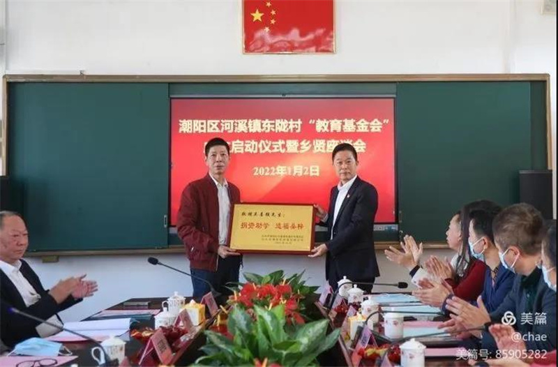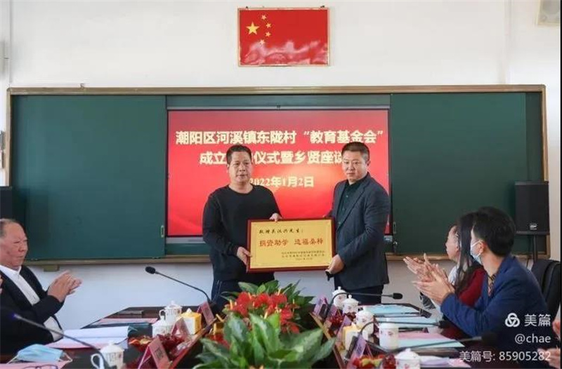 2022年1月2日,潮阳区河溪镇东陇村“教育基金会”成立启动仪式暨乡贤座谈会在东陇小学举行,我会副会长吴乾水、吴喜强各捐资100万。