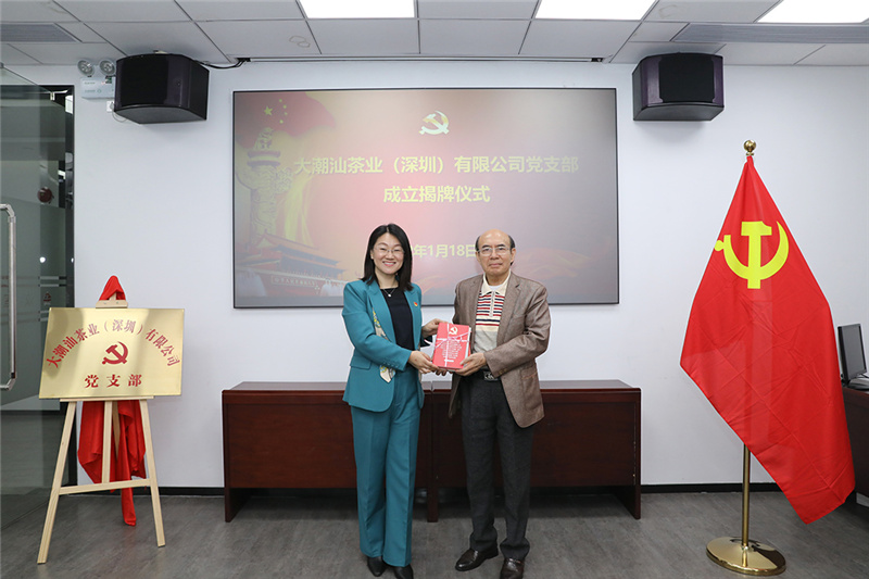 党委副书记周木亮宣读《关于成立中国共产党大潮汕茶业(深圳)有限公司支部的批复》、《关于中国共产党大潮汕茶业(深圳)有限公司支部选举结果的批复》。