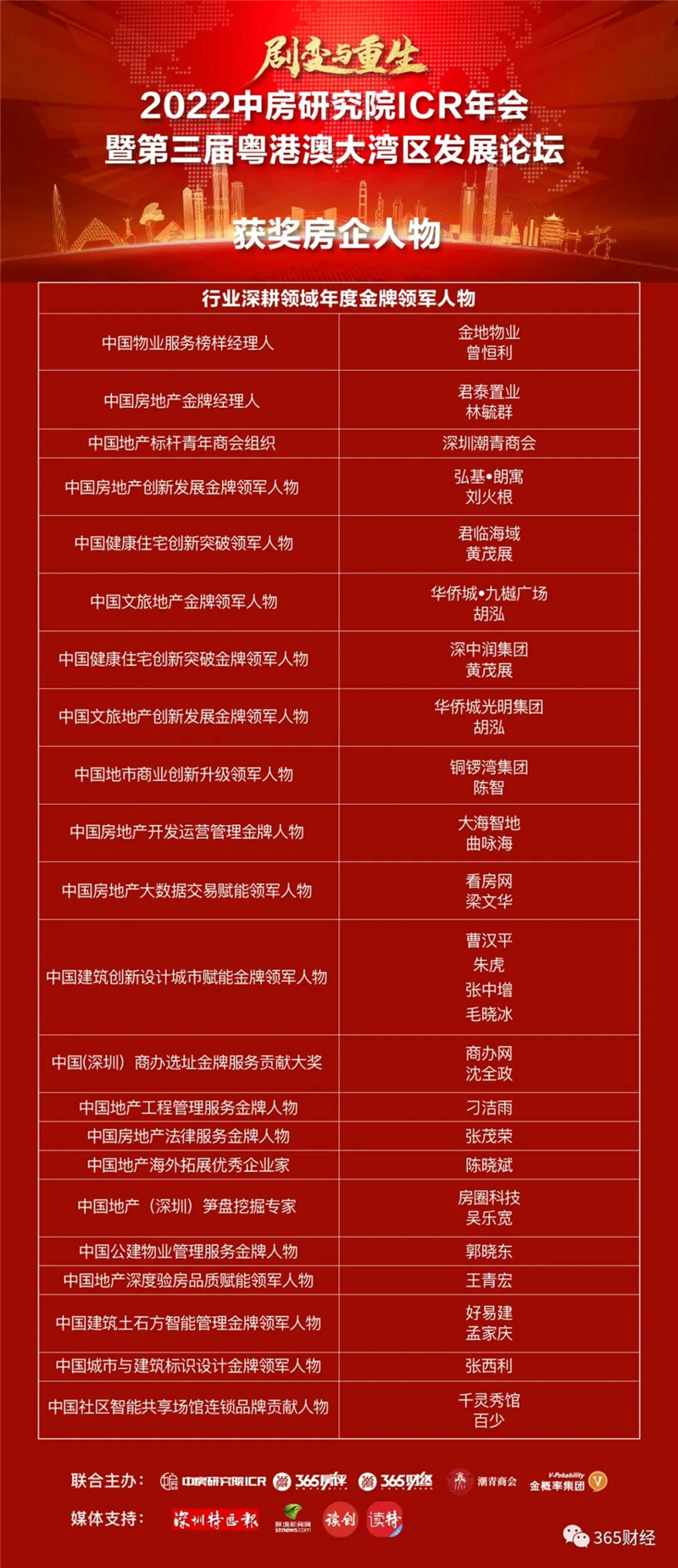 全国获奖的房地产行业深耕领域年度金牌领军人物如下: