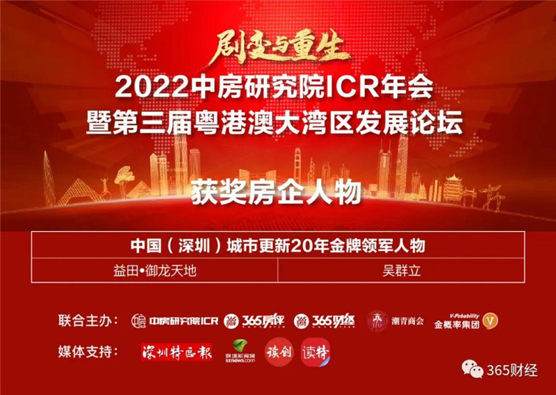 此外,吴群立获得中国(深圳)城市更新20年金牌领军人物的称号。