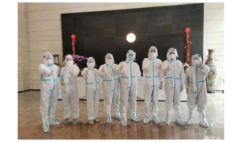 粤美特的大白团队迅速购进方便面、牛奶、口罩等食品饮料和防疫物资,以4人为一个小组,从大厦1层开始到23层,为每一层员工免费送去充足的生活保障物资和防疫物品。在大厦被封的1000多人中,粤美特自己的员工只有70多人,40多人主动自愿组成粤美特大白志愿队,为整个大厦提供服务,剩下的员工则主动担当起联络员,成为粤美特大厦一道亮丽的风景线。