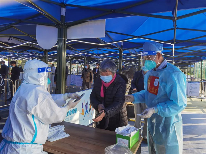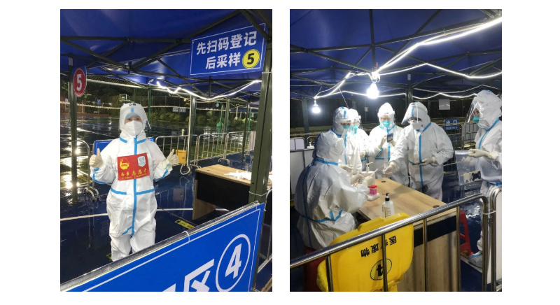 公司成员深入基层社区,在社区工作者的指导下,引导检测人员有序入场,协助各核酸检测采样小组完成人员登记等工作。同时,为前来咨询的居民答疑解惑,介绍接种后的禁忌和可能出现的不良反应等知识。