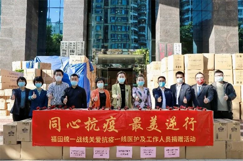 2022年3月8日,陈镇文去到福田区梅林街道办事处,参加了福田统一战线关爱抗疫一线医护及工作人员捐赠活动,向坚守一线的最美“女神”表达敬意和慰问。大批的云南白药气雾剂、艾灸贴、一次性全棉内衣裤、速干衣及牛奶、士力架等暖心物资,向一线的医护及工作人员传递了爱与温暖,也充分体现了广大统一战线成员与大家风雨同舟、共克时艰的责任担当。